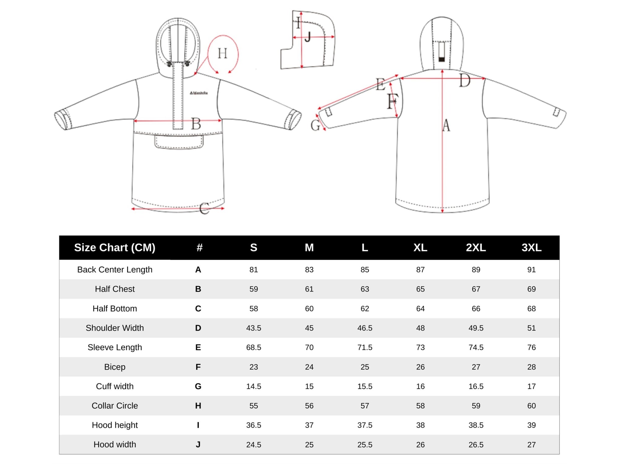 - Elasticated hood and rear Velcro hood adjustment